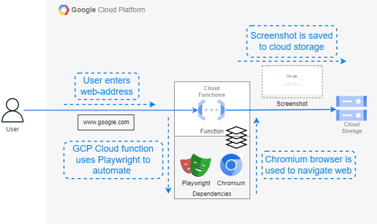Google Cloud Functions offers an excellent platform for integrating with automation tools like Playwright, enabling the execution of browser-based tasks in the cloud. Using this setup, you can automate any browser task you want to—for example, UI testing, web scraping, and performance monitoring.