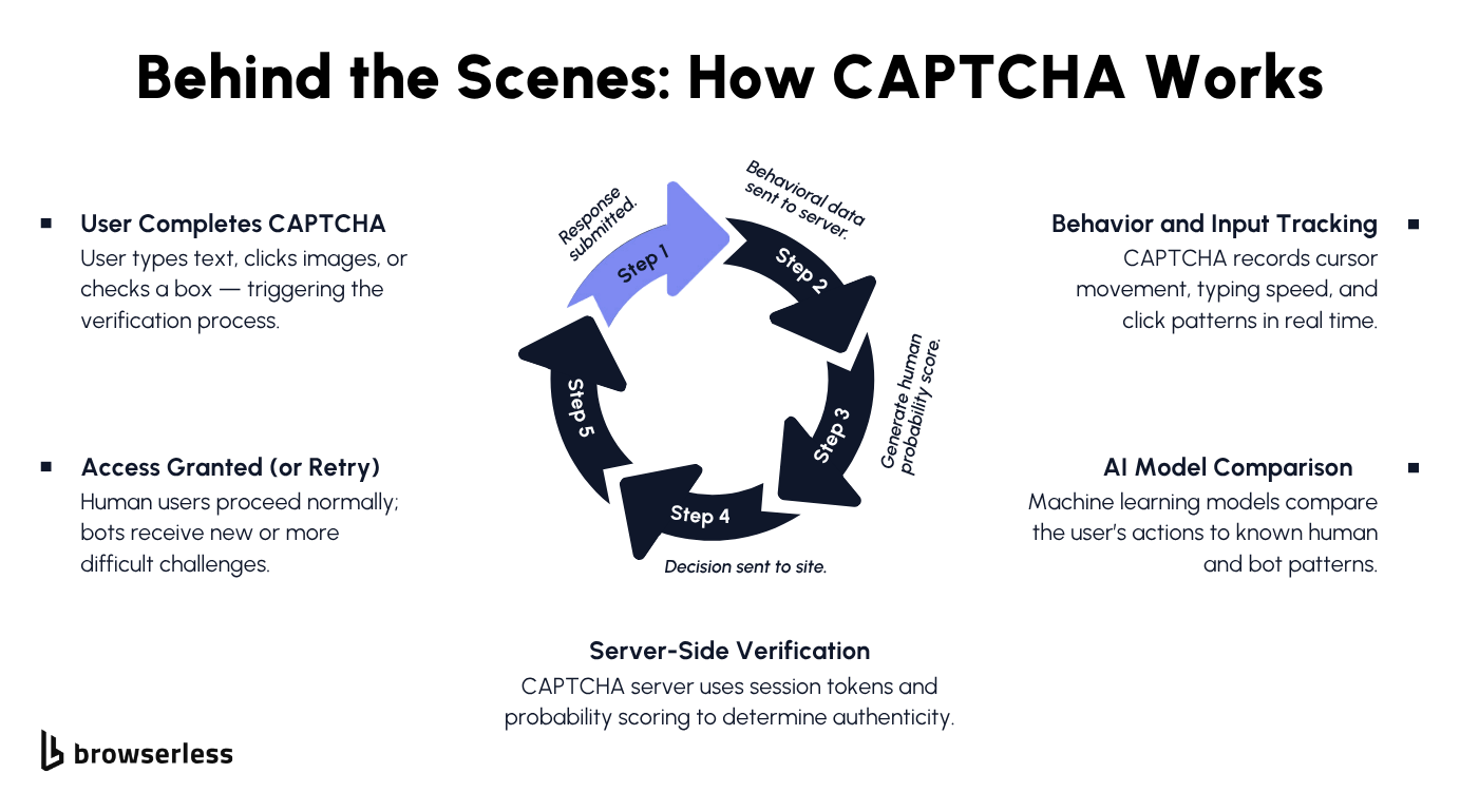 In today’s internet, bots, fake traffic, and automated attacks make up a massive portion of online activity, and that’s where CAPTCHAs come in. These small but powerful tests are how websites keep human users separate from machines, protecting online security and preventing misuse of forms, logins, and data. But what is CAPTCHA, really, and how does it work in an age where AI can solve puzzles faster than people to prevent scammers? In this guide, we’ll unpack the true CAPTCHA meaning, explore its evolution, and show how modern tools like Browserless now help developers solve CAPTCHAs ethically, efficiently, and in full compliance with security best practices.