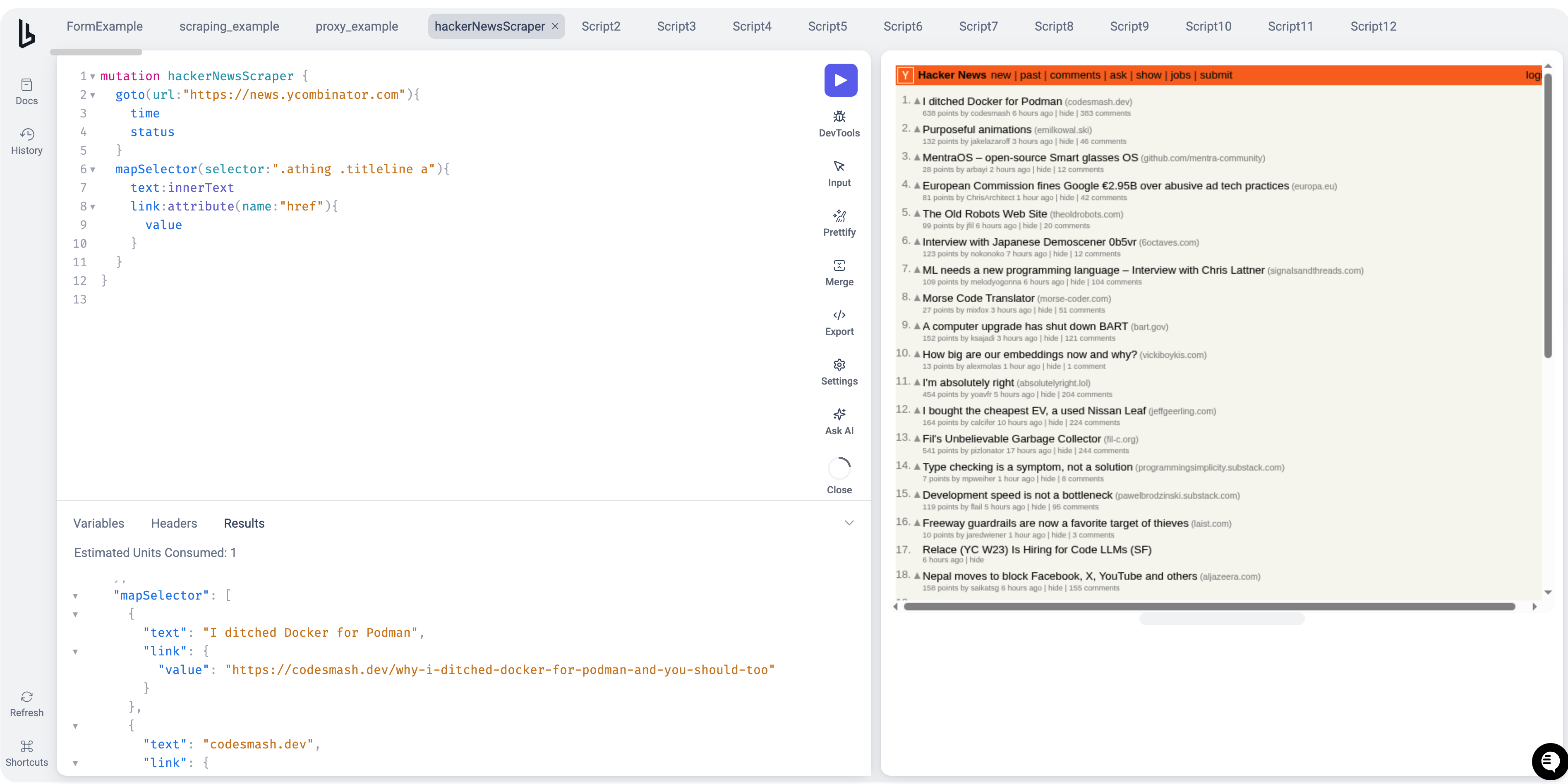In this example, we are going to do a simple data scrape of the Y Combinator Hacker News feed. For this, we will use two main tools, Puppeteer and Browserless. In the above paragraph, I mentioned these tools with corresponding links. I highly recommend you check them out before diving into the example.